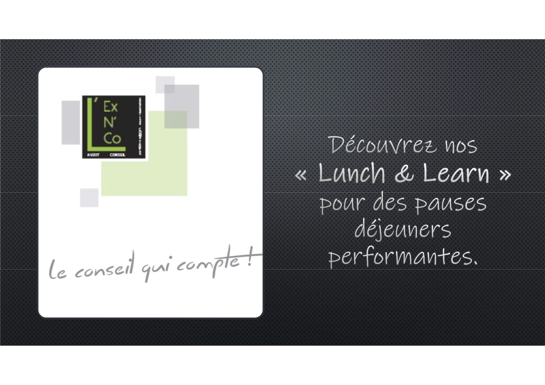 Cette nouvelle année 2020 accueille une nouvelle formule « LUNCH & LEARN ». Entre formation et atelier, nous vous offrons à vous, et/ou à votre personne-clé, et/ou à vos collaborateurs une parenthèse bien-être et développement personnel durant la pause – déjeuner. Trois thématiques vous sont proposées au cours du...