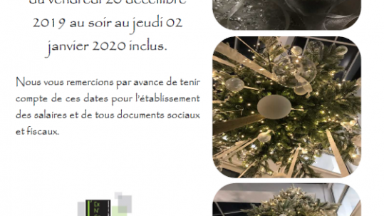 Fermeture annuelle Noël 2019
